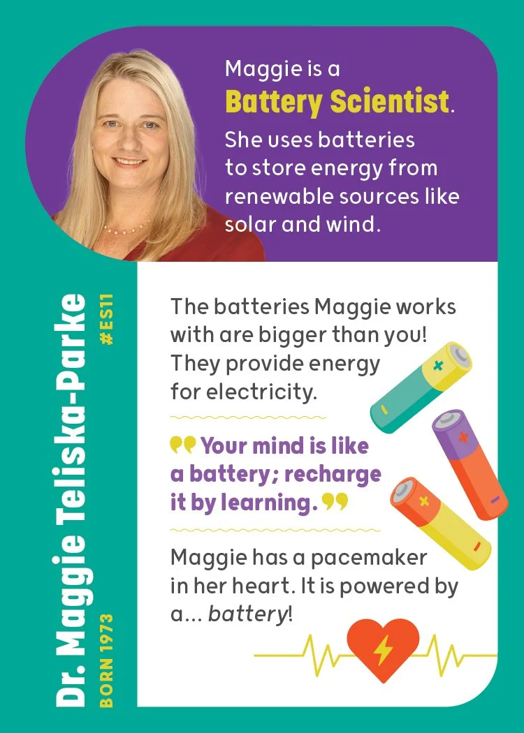 Dr. Maggie Teliska-Parke’s card was developed in collaboration with STEM Superheroes, LLC and Enel North America.