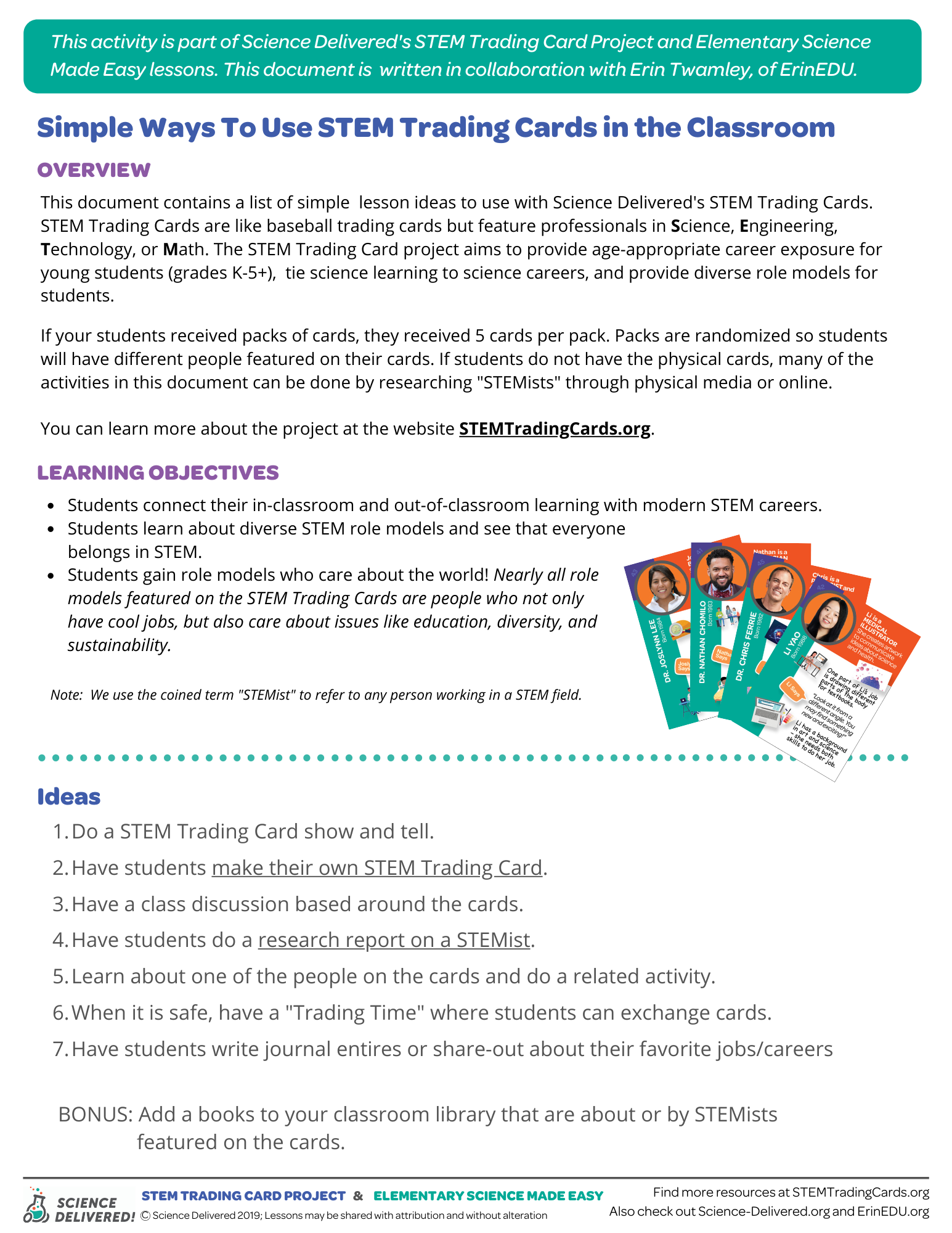 Get "Simple Ways to use STEM Trading Cards in the classroom" here